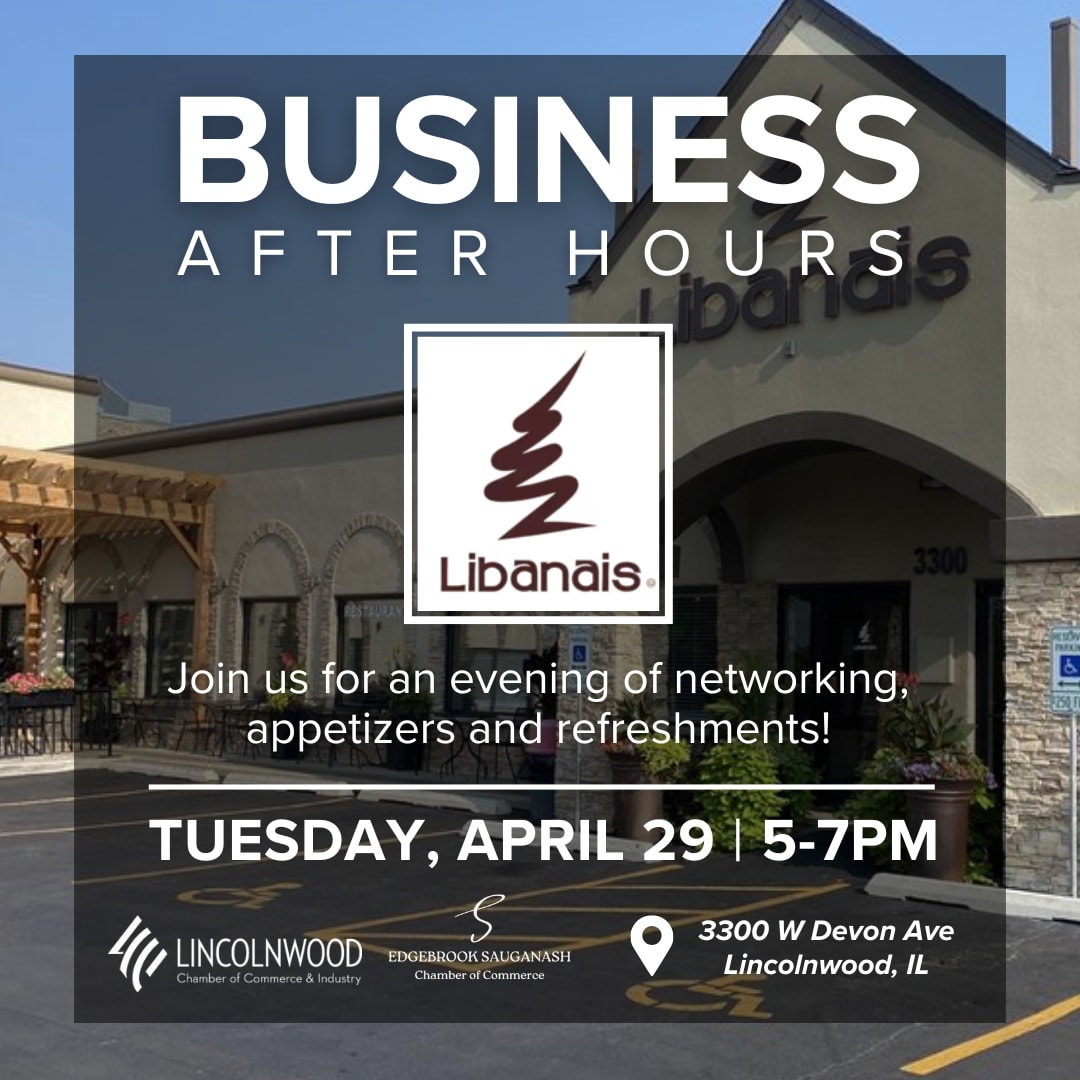 Join us in partnership with the Lincolnwood Chamber of Commerce for an evening of connection and conversation at our Business Networking After Hours event, hosted at Libanais Restaurant, 3300 W Devon Ave, Lincolnwood from 5pm - 7pm. Enjoy delicious complimentary appetizers while networking with fellow business professionals in a relaxed, welcoming atmosphere. A cash bar will be available.